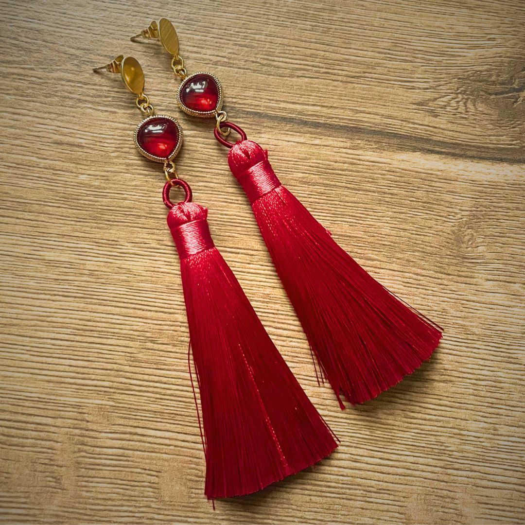 Lots of colours possibilities with these shiny porcelain conch shell beads, here I've used the coral red with my new tassel pendants, and finished antique silver chain, this design could also be used to create a pair of on-trend statement earrings! Click on the images to order...